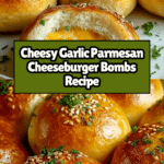 These Irresistibly Cheesy Garlic Parmesan Cheeseburger Bombs are a fun and flavorful twist on a classic cheeseburger. Wrapped in buttery biscuit dough and baked to golden perfection, they make a perfect appetizer or snack for any occasion.