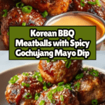 Korean BBQ Meatballs are a delicious fusion of bold flavors and tender, juicy bites. Paired with a spicy mayo dip, these meatballs make a perfect appetizer or a fun main dish for any occasion.
