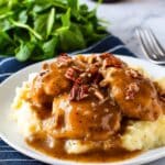 Keywords: maple bourbon pecan chicken, gluten free chicken recipe, one pan chicken, chicken thighs recipe, sweet and savory chicken, easy dinner recipes