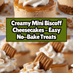 Keywords: Mini Biscoff Cheesecakes, Biscoff cookie butter dessert, no bake cheesecake, Biscoff cookie crust, creamy cheesecake, easy dessert