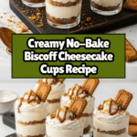 No-Bake Biscoff Cheesecake Cups are a delightful treat that combines the rich, creamy texture of cheesecake with the warm, spiced flavor of Lotus Biscoff biscuits. Easy to assemble and requiring no oven time, these cups are perfect for a quick dessert that feels indulgent and special.