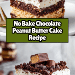 This No Bake Chocolate Peanut Butter Cake is a luscious and easy-to-make dessert featuring layers of creamy peanut butter mousse, rich whipped cream, chocolate graham crackers, and decadent hot fudge sauce. Perfectly chilled to soften the layers into a cake-like texture, it’s garnished with Reese’s peanut butter cups and optional chopped peanuts for added crunch. Ideal for peanut butter and chocolate lovers seeking a delightful treat without turning on the oven.