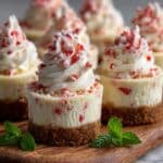 These No-Bake Peppermint Cheesecake Bites are a delightful holiday treat combining a crunchy chocolate cookie crust with a creamy peppermint-infused cheesecake filling. Coated with white chocolate and topped with crushed peppermint candies, these bite-sized desserts are easy to prepare, require no baking, and make a festive addition to any celebration.