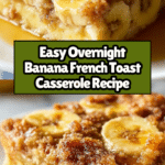 This Overnight Baked Banana French Toast Casserole is a delightful and easy-to-make breakfast dish that combines the rich flavors of ripe bananas, cinnamon, and a buttery streusel topping. It features chunks of sourdough or French bread soaked overnight in a creamy custard mixture, then baked to golden perfection. The casserole is perfect for busy mornings and can be served warm with maple syrup, fresh fruit, or whipped cream for an indulgent start to your day.