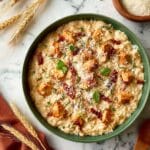 Store any leftovers in an airtight container in the refrigerator for up to 3 days. Reheat gently in the microwave or on the stovetop with a splash of broth or cream to restore moisture. Avoid overheating to keep the chicken tender and rice creamy.