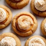 Keywords: pumpkin pie cookies, pumpkin cookies, thumbprint cookies, pumpkin spice cookies, fall desserts, holiday cookies, pumpkin pie filling, chewy pumpkin cookies, spiced cookies, pumpkin dessert