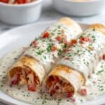 Queso Chicken Enchiladas Bake is a creamy, cheesy Mexican-inspired casserole featuring shredded chicken seasoned with taco spices, wrapped in soft flour tortillas, and smothered in a rich queso blanco cheese sauce with diced tomatoes and green chilies. Baked until bubbly and golden, this comforting dish is perfect for family dinners and easy meal prep.