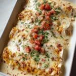 - Pour the Queso Sauce: Evenly pour the warm queso sauce over the arranged enchiladas, covering each one thoroughly so every bite is covered in creamy cheese.