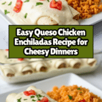 This Queso Chicken Enchiladas recipe offers a creamy, cheesy twist on traditional enchiladas by combining shredded chicken, taco seasoning, sour cream, and cheeses, all smothered in a rich queso blanco and diced tomato sauce. Baked to bubbly perfection, these enchiladas are a comforting and flavorful meal perfect for family dinners or casual gatherings.