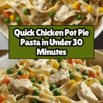 Quick Chicken Pot Pie Pasta is a comforting and hearty dish that combines tender chicken, mixed vegetables, and a creamy sauce with egg noodles. It’s perfect for busy weeknights when you want a warm, satisfying meal without spending hours in the kitchen.