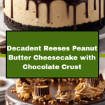 This Reeses Peanut Butter Cheesecake with a rich chocolate crust is a decadent treat perfect for peanut butter and chocolate lovers. Creamy, smooth, and studded with chopped Reeses cups, it’s an irresistible dessert that’s sure to impress at any gathering.