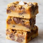 These Salted Caramel Chocolate Chip Cookie Bars combine chewy chocolate chip cookie dough with a luscious layer of homemade caramel, sprinkled with flaky sea salt for the perfect sweet and salty treat. Baked in a single pan, they’re an indulgent dessert that’s easy to make and sure to impress.