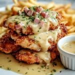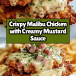 Savory Malibu Chicken is a delightful dish featuring tender chicken breasts layered with ham and Swiss cheese, breaded to a crispy golden perfection, then baked and served with a creamy, tangy mustard sauce. This recipe combines frying and baking methods to achieve a rich, flavorful meal that’s perfect for a comforting dinner.