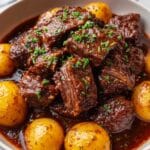 This Slow Cooker Garlic Butter Beef with Potatoes is a comforting and hearty meal perfect for busy days. Tender beef chuck roast simmers with baby Yukon Gold potatoes in a flavorful garlic butter sauce infused with herbs and a touch of heat. It’s an easy, hands-off dinner that delivers rich taste and satisfying textures.