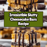 Slutty Cheesecake Bars are a decadent dessert combining a chocolate chip cookie base, a layer of whole Oreos, and a creamy cheesecake topping studded with cookie pieces. This indulgent treat is perfect for anyone who loves the irresistible combination of cookies and cheesecake in one bite.