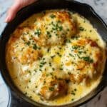 Store leftovers in an airtight container in the refrigerator for up to 3 days. Reheat gently in the oven or microwave until warmed through. Avoid overheating to keep the chicken moist and creamy.