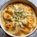 5. Bake: Place the baking dish uncovered into the preheated oven. Bake for 45–60 minutes, or until the chicken breasts reach an internal temperature of 165°F (74°C) and the top is golden brown and bubbly.