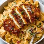 This Southern Style Creamy Parmesan Chicken Pasta is a rich and flavorful dish featuring tender, seasoned chicken breasts cooked to golden perfection, layered atop a bed of creamy parmesan-coated fettuccine. With a luscious sauce combining heavy cream, cream cheese, and freshly grated Parmesan, enhanced by subtle smoky and citrusy notes, this pasta dinner delivers comforting Southern flair perfect for any night of the week.