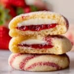 - Cool Completely: Transfer cookies to a wire rack and allow them to cool fully so the cheesecake centers firm up nicely. Serve and enjoy the perfect balance of creamy cheesecake and fresh strawberry jam in a soft cookie.
