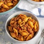 Medium shells work well because they hold the sauce nicely, but you can also use elbow macaroni, rotini, or any short pasta shape you prefer.