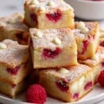 Keywords: white chocolate blondies, raspberry blondies, easy blondie recipe, dessert bars, berry blondies, baked blondies, white chocolate raspberry dessert