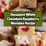 These White Chocolate Raspberry Blondies are a decadent twist on classic blondies, featuring a rich, buttery batter studded with creamy white chocolate chunks and bursting with fresh or frozen raspberries. Perfectly soft and chewy with golden edges, these blondies make an indulgent treat for any occasion.